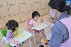 自分で食べたいという意欲(手づかみ食べなど)を大切にしています。